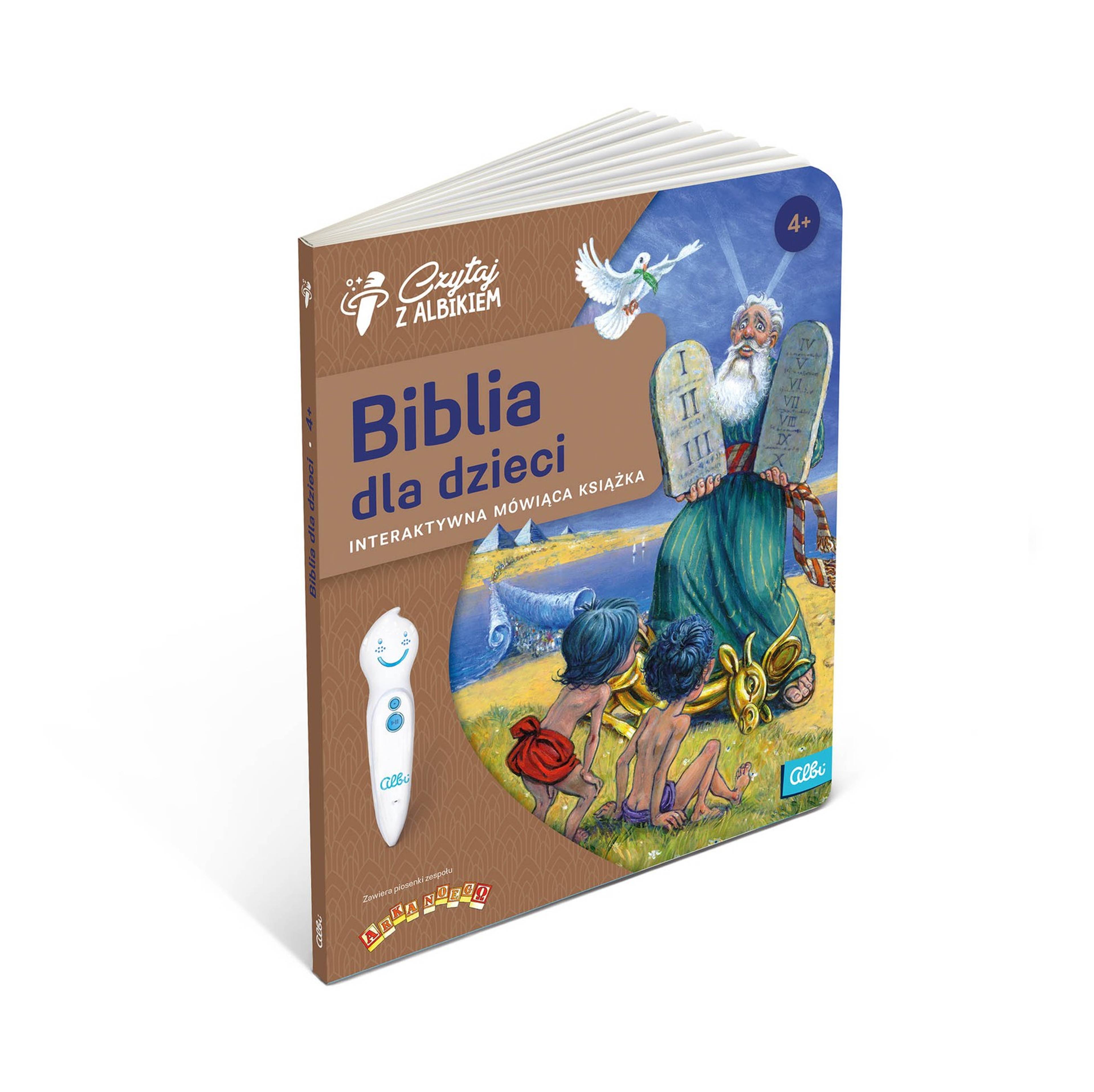 Interaktywna Biblia dla dzieci z serii Czytaj z Albikiem to zbiór najważniejszych historii ze Starego i Nowego Testamentu, które przedstawione są na pięknych ilustracjach. Z książki można usłyszeć długie historie, np. o stworzeniu świata, Noem, cudach Jezusa. To nie wszystko - opowieściom towarzyszą piosenki zespołu Arka Noego! Są także modlitwy dla dzieci oraz quizy sprawdzające wiedzę. Książkę czyta aktor Marcin Kobierski i inni wspaniali lektorzy ze studia Katolik.tv. Treści zawarte w Biblii dla dzieci uzyskały akceptację Kościoła Katolickiego i zgodę na publikację (książka ma tzw. Imprimatur).